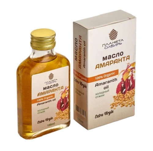 Another high-quality unrefined, raw-pressed, amaranth oil can be bought from the Planet Siberia company. The product is available in 100 ml glass containers. The cold pressing method helps to keep all the healing properties intact and intact. The high content of vitamin E ensures the normalization of the functioning of the heart, an increase in the elasticity of the walls of blood vessels, a decrease in cholesterol and high-quality prevention of cancer. The oil contains the most important phytosterols and carotenoids, whose functionality allows the body to be as healthy as possible. Some shoppers report that mood increases and anxiety decreases. Nutritional value per 100 ml 900 calories. You can order online in the online store. The shelf life states that open oil must be used within a month.