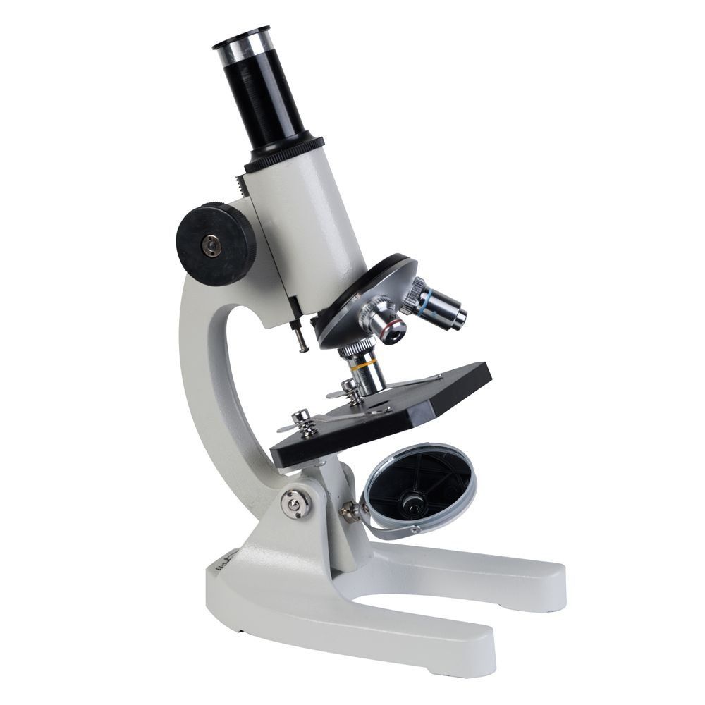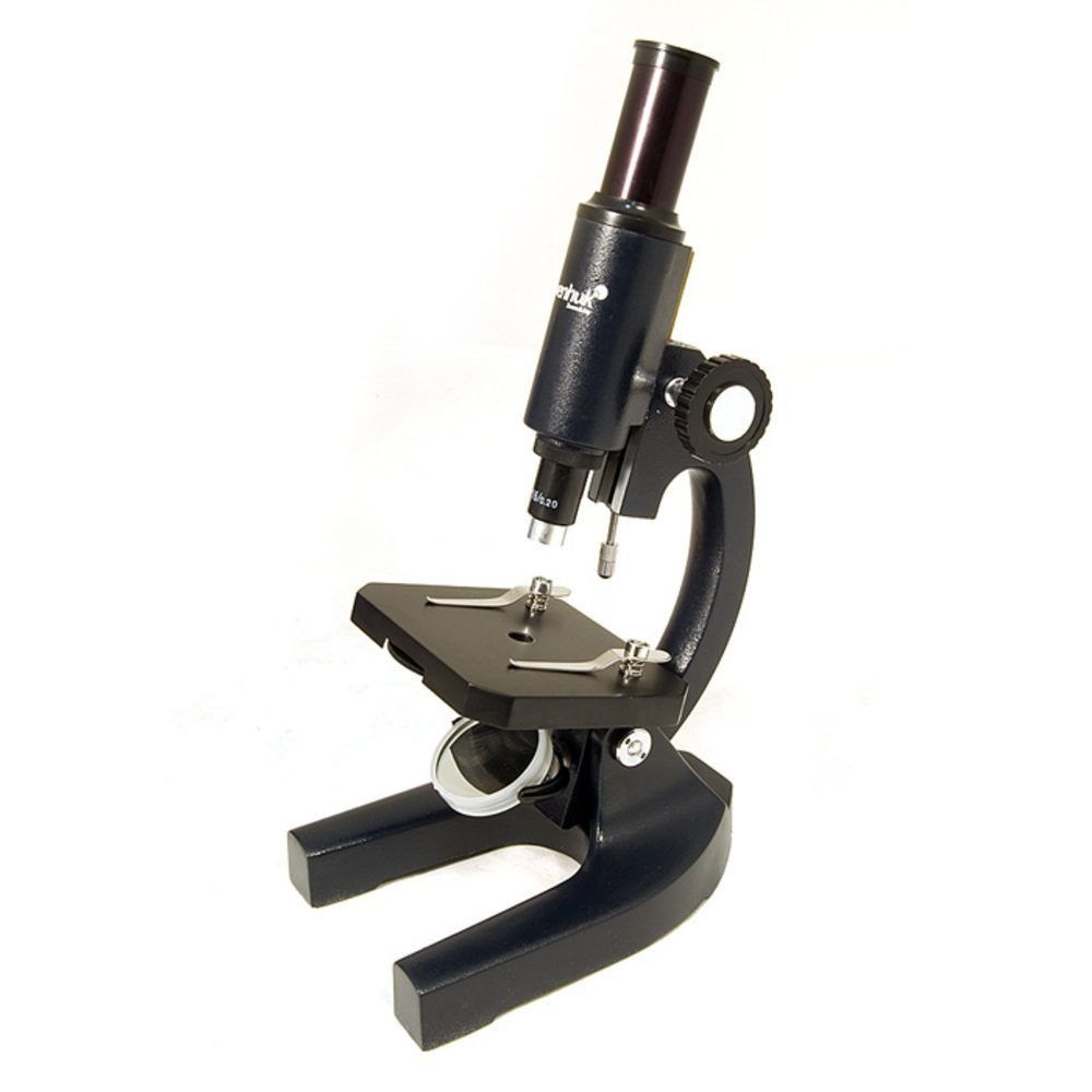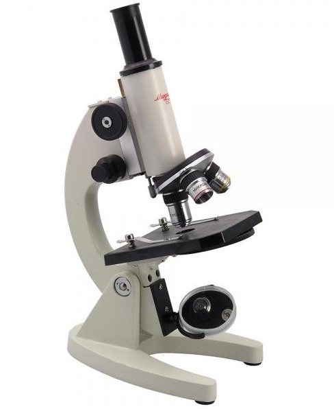 This device is quite simple, but of excellent quality. It can be used to familiarize the student with the microcosm. The light source is a special mirror with a disc with diaphragms for adjusting the light flux. The highest magnification is 200x. The lens is achromatic to minimize distortion. The body is made of a metal alloy.