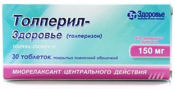 Another centrally acting muscle relaxant is mydocalm. It is produced in the form of round, convex white tablets with a characteristic aroma. The main active ingredient of tolperisone hydrochloride has significant activity on the nervous tissue and inhibits spinal reflex arcs well. Indications for use include treatment of spasticity in adults after stroke, treatment of painful muscle contraction, Little's disease, and other similar conditions. Contraindications include pregnancy, lactation, children under 3 years of age, as well as hypersensitivity to drug components. As a general rule, the recommended dose of 150-450 mg should be divided into three divided doses. The drug is often prescribed for osteochondrosis, as it relieves pain well and helps to relieve neck spasms and back pain. The medicinal product is produced in dosages of 50 and 150 mg.