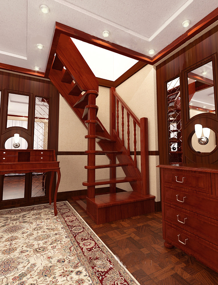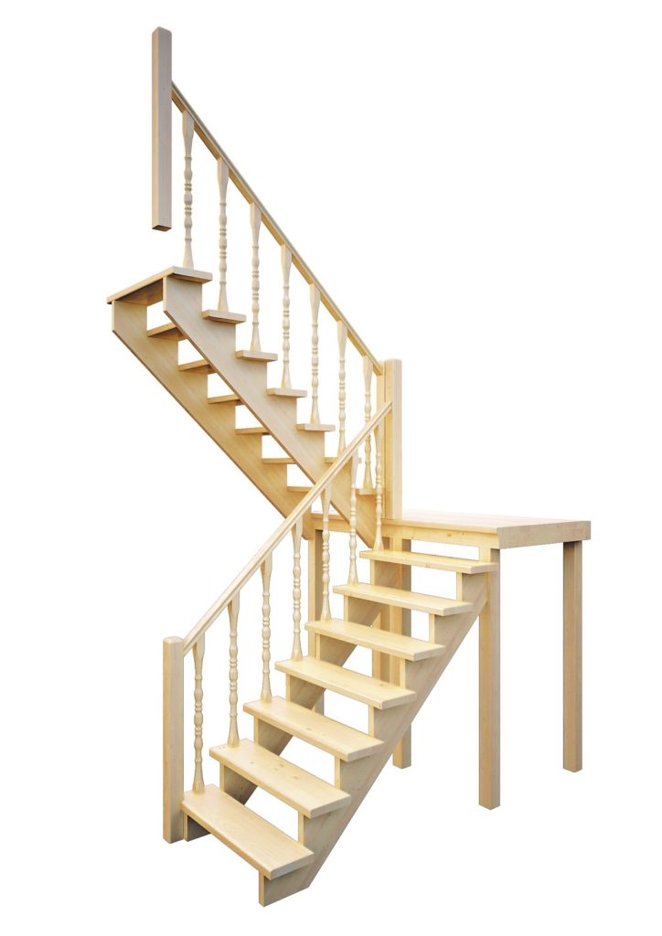 This model will be the perfect complement for a duplex apartment or house. A feature of the product is its small dimensions, which allow you to mount the stairs even in small rooms. The product is made of pine and covered with a special layer that protects the wood from destruction and pests.