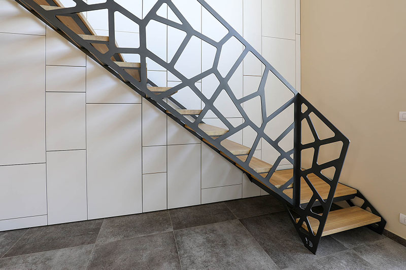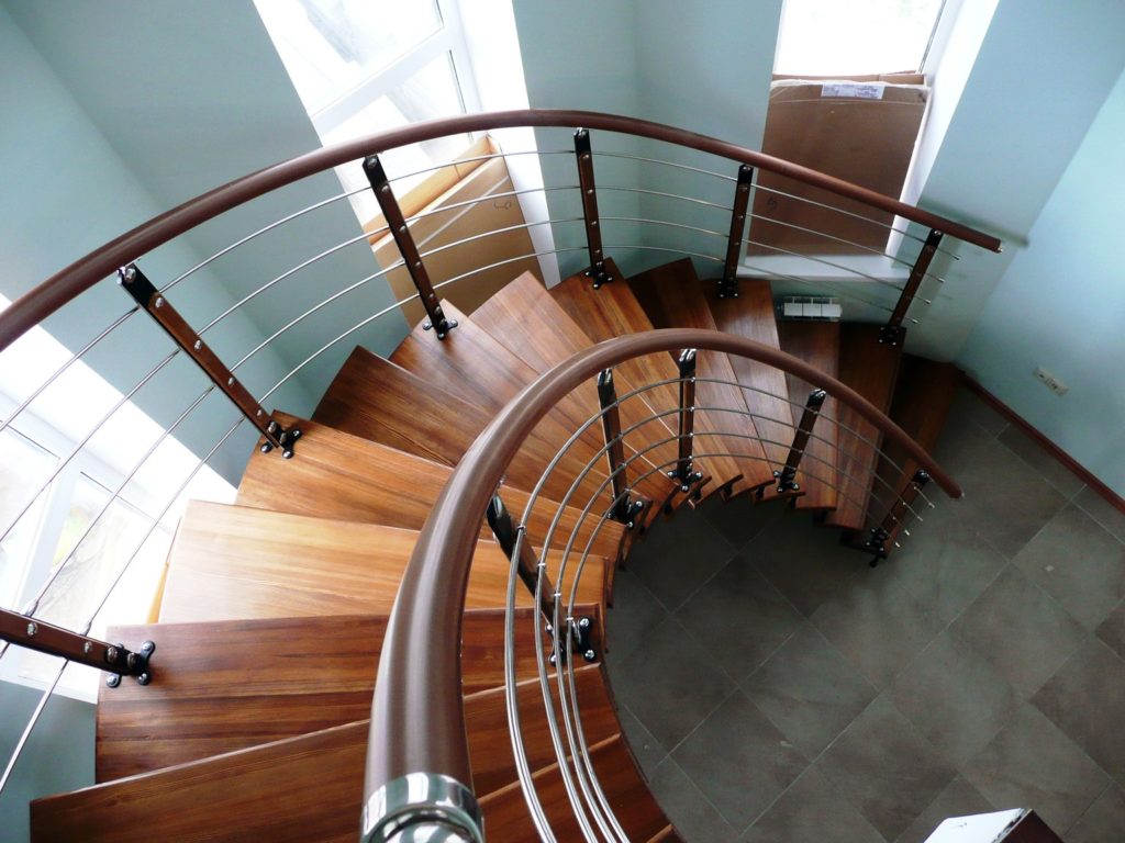 This model is made of metal. At the request of the client, steps are made of metal, wood or durable glass. Manufacturers often offer their customers a combined combination of all materials. The design is swivel and can be suitable for a small room. Practically does not take up space. When installed, a niche remains under the structure, which can be used for a wardrobe or a small sofa. This combination allows you to add a touch of unusual combination of details to the interior.