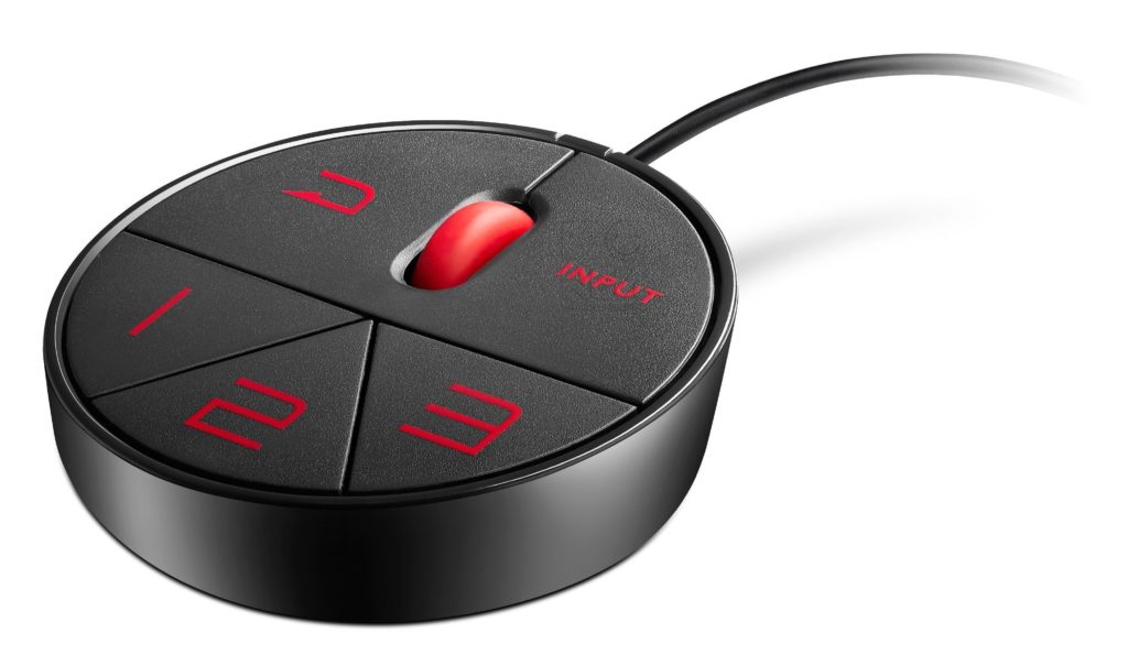 The monitor is also equipped with a mini remote control for controlling the Swift Switch or S Switch. Typically used for games, but can be configured to work in programs. The designations of the remote control buttons are reflected in the instructions supplied with the device.