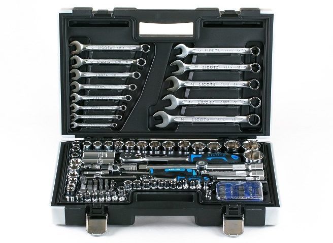 It showed itself well in small service stations, as well as during repairs at home or in the field. Refers to sets in the middle price segment. Here, too, the entire tool is made of high-strength materials. Chrome vanadium steel is considered to be a very tough alloy that does not rust. The ratchets are equipped with a very reliable mechanism. It features a wide range of combination wrenches and sockets. It can be purchased for about 8,000 rubles.