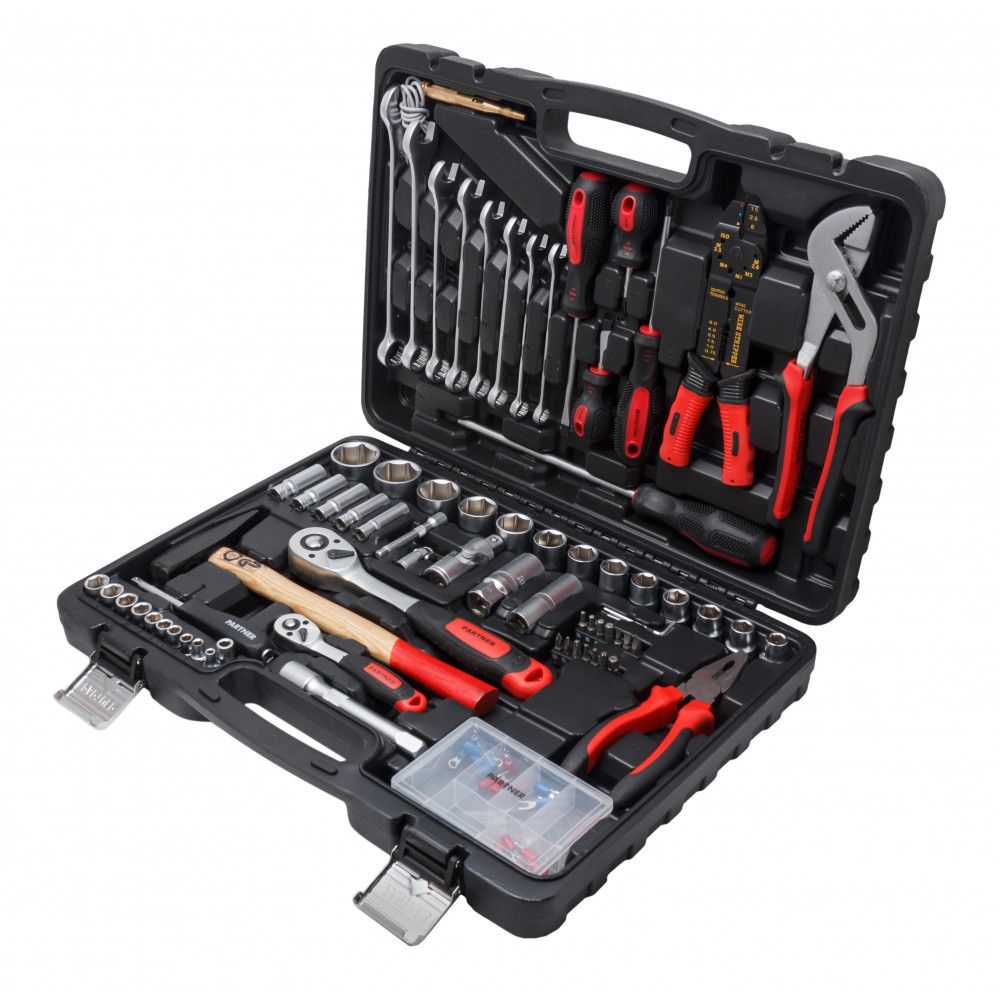 107 items can be found in this set. With it, preventive maintenance, auto maintenance will not be scary. Absolutely all items hold normally thanks to the most convenient and not bulky suitcase. Service life is guaranteed. The reliability is provided by the chrome vanadium coating.