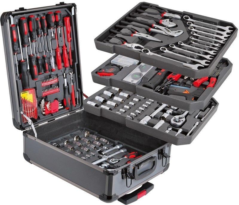 This versatile set of tools can be obtained for 7,000 rubles. Everything is packed in a large suitcase on wheels. The case contains 186 items. By the way, this is the largest set in the review. But it is only suitable for a private garage.