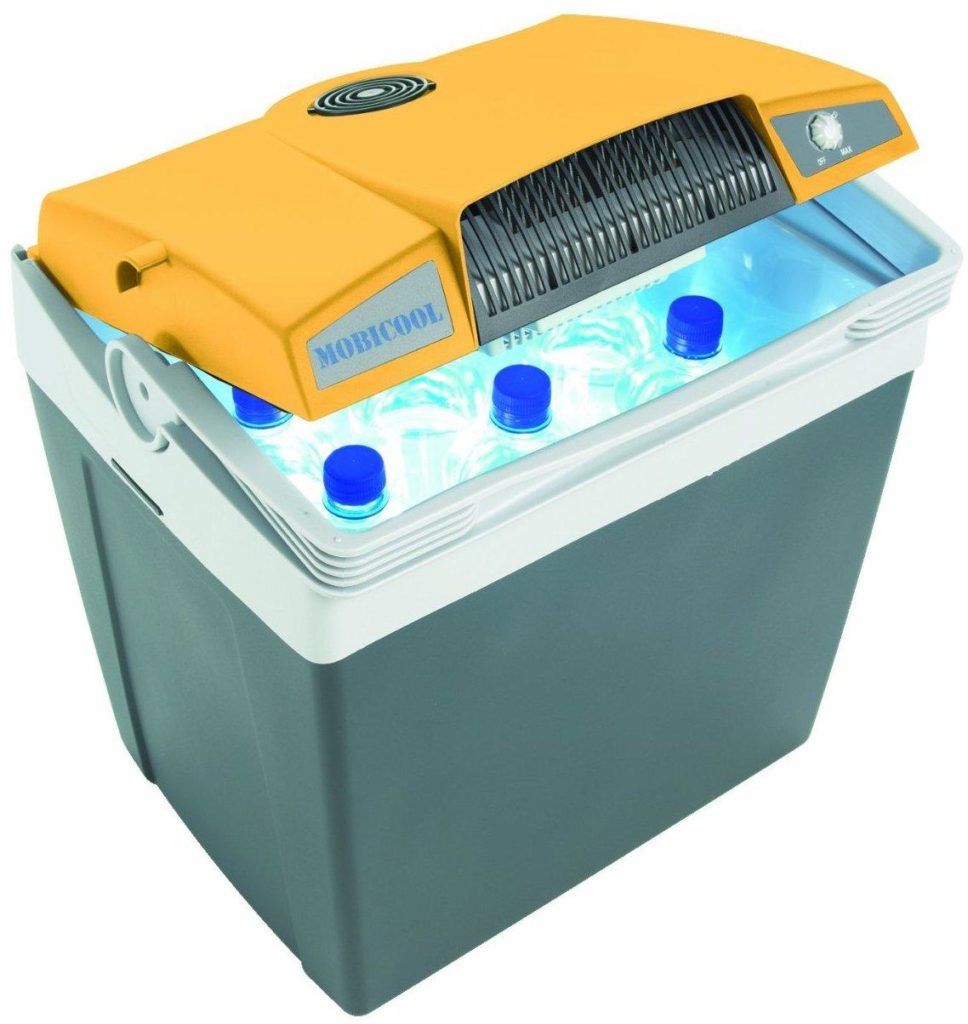 This is an inexpensive portable car refrigerator, but it has excellent performance. Its weight is 4.3 kg, two fans are built into the lid, which allow you to quickly cool food at 18 degrees below the ambient temperature. The camera has a capacity of 18 liters and operates on a regular power supply and battery. It is important that at a low price this device consumes little energy.