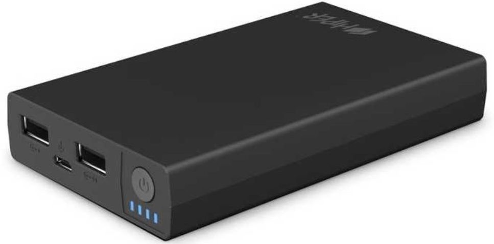 The power bank from the Cactus company has a capacity of 18,000 mAh, which is approximately enough for 1-1.5 recharges of an ordinary battery from a laptop. The gadget has a high-quality case made of anodized aluminum materials. The device comes with a number of different adapters in order to charge various devices.