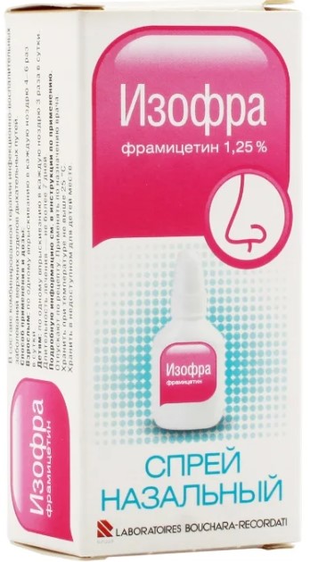 Release form - 15 ml nasal spray. The medicine immediately removes the cause of the disease. In the process of application, the amount of mucous discharge from the nose decreases. At the same time, the nasal sinus is perfectly cleaned. Sometimes Isofra provokes allergic reactions. Therefore, an individual sensitivity test must be performed.