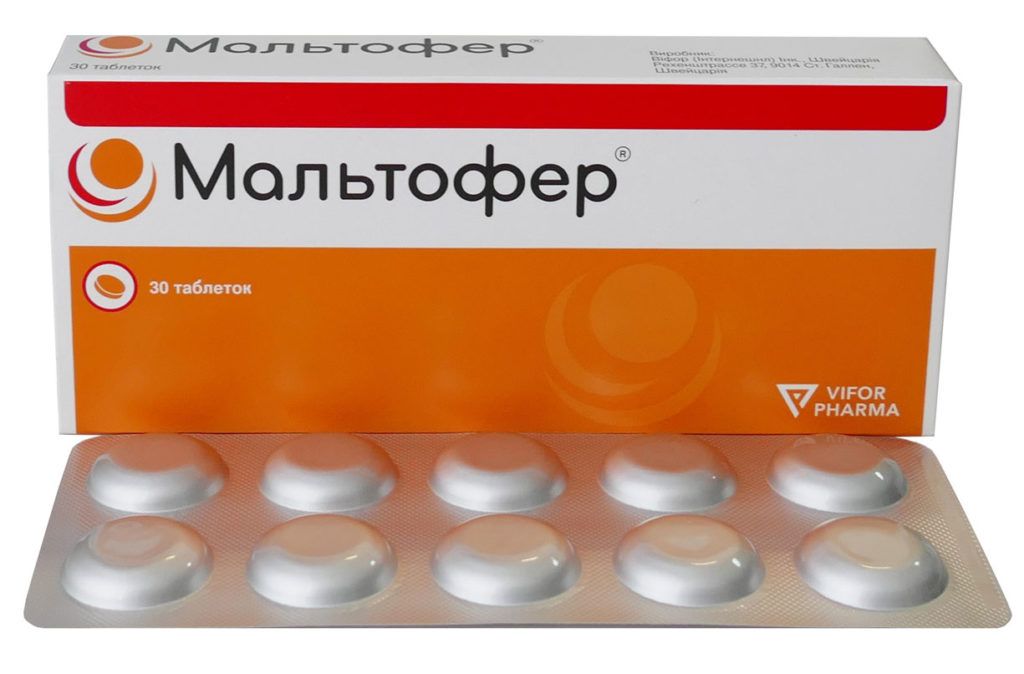 This drug is sold in pharmacies in the form of chewable tablets. Maltofer is a combined action drug. It contains trivalent iron as an active ingredient. Also on sale there are drops, syrup and injection ampoules of the same name. The drug is prescribed to stimulate the function of hematopoiesis. It has a complex effect and resembles ferritin in its effectiveness. When it enters the body, the drug is quickly absorbed and incorporated into natural hemoglobin.