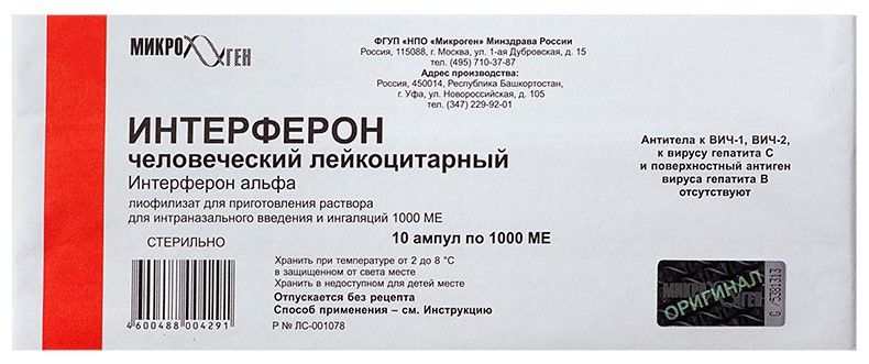 The medicine is produced in the form of ampoules with a powder substance. It is diluted with water and buried in the nose. The resulting liquid is also used for inhalation. During colds, it is recommended to regularly use Interferon in order to protect yourself from infection. This drug is sometimes recommended for the treatment of infants and pregnant women.