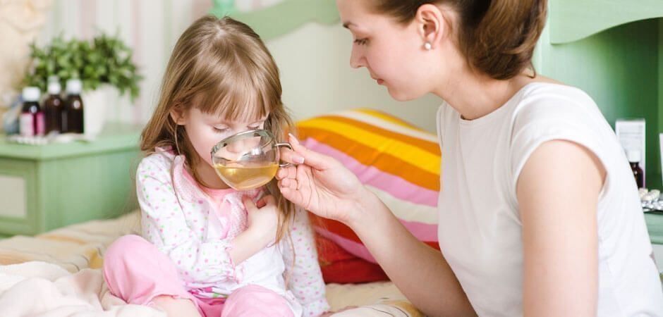 The acute stage is fraught with the fact that, due to vomiting and diarrhea, children begin to dehydrate rapidly, it occurs according to a more accelerated program than in adults. Therefore, it is important to start timely treatment, to ensure that the body of a sick baby receives a sufficient amount of water at room temperature. The more often you give your child a drink, the better. Most likely, the child will not want to drink in sips, so be patient and drink with a teaspoon.
