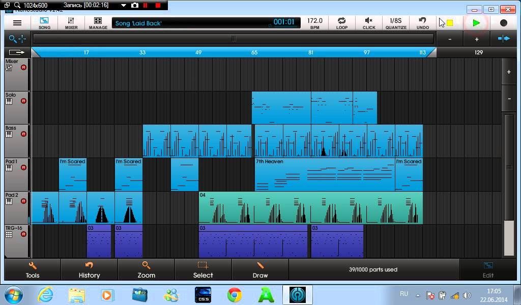 With this program you can count on getting more or less good amateur compositions. This application is very compact, that is, it takes up a minimum of disk space. But it has a large set of instruments, plugins and even a built-in synthesizer. Mixing tools also come to the rescue. It will be difficult for beginners who come across such applications for the first time.