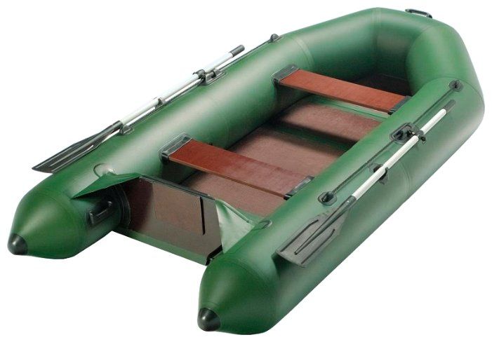 A standard 2-seater boat with a non-inflatable bottom, 3 meters long and 144 cm wide, made of reinforced PVC and belongs to the motor-rowing type. Green colour. The model is equipped with 2 air compartments with a diameter of 40 cm, rigid seats, outboard transom, paddles, cable, pump and repair kit. It is allowed to install a motor with a power of up to 4 hp. Loading capacity - 360 kg, net weight of the product - 17 kg 500 g.