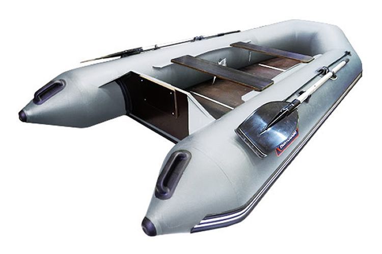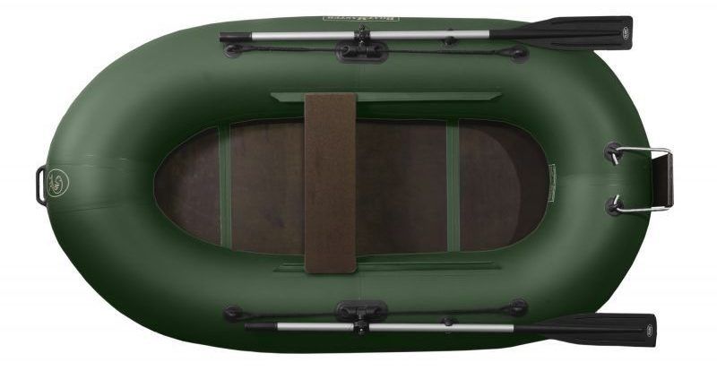 Air compartments in model 2, the seat is quite firm. The bottom is non-inflatable, with a collapsible plywood floor, high sides. The complete set of onboard equipment includes carrying handles, paddles, a line cable, oarlocks, a pump and a repair kit. The boat is compact enough and fits into the trunk of a car without any problems, but heavy, as it weighs 20 kg.