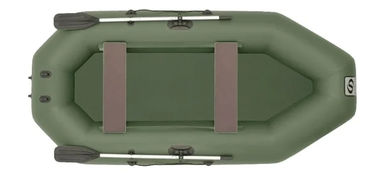 The 2-seater rowing model is made of reinforced PVC, equipped with a rigid seat and 2 air compartments. The delivery set includes a rope, oars and oarlocks. On the contour of the body there are handles and fastenings for oars. Product color - dark green. Length - 260 cm. Permissible load - 220 kg.