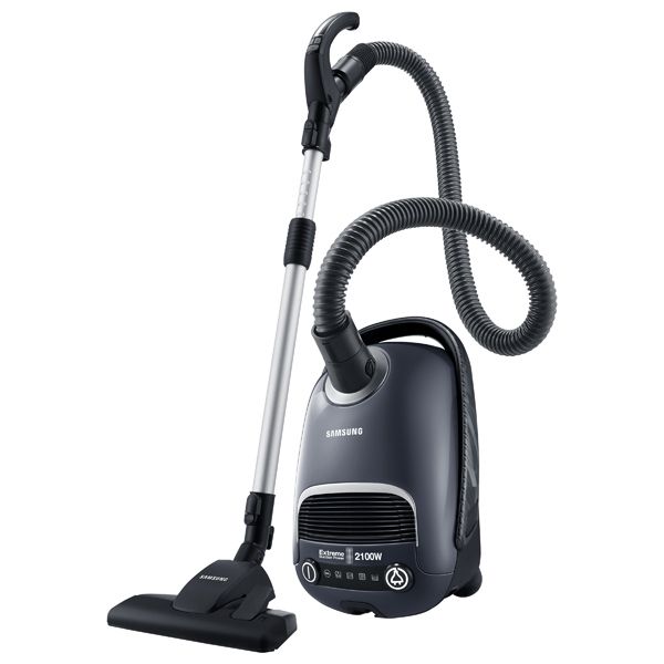 A budget model with good functionality: there is a bag full indicator, overheating protection, power regulator, automatic cord rewinding. The body has a convenient storage compartment for attachments. Hard-to-reach areas are cleaned out thanks to the air blowing function. A powerful enough vacuum cleaner for full cleaning of smooth surfaces, carpets, upholstered furniture (all attachments are available). You can park both vertically and horizontally. The long cord provides a large cleaning radius.