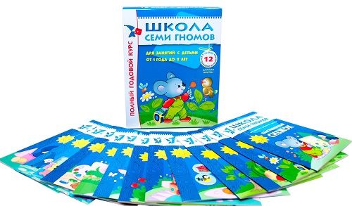 If you want to have at once all useful books from zero to a year, then we recommend you a wonderful set of books called "The School of the Seven Dwarfs". The products are a real, complex system, to which the "diploma of the school of the seven dwarfs" is attached. In the first book, you will find all kinds of jokes and nursery rhymes, accompanied by funny, colorful pictures. The kid, looking at the image, will soon learn to recognize the name of the drawn object.