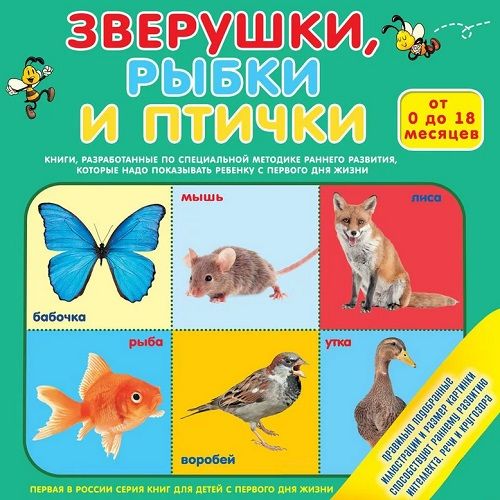 To acquaint your children with the world of fauna, choose a book from the Russian publishing house AST "Animals, Fish and Birds" (for children from 0 to 18 months). This edition was specially developed according to the method of early development and will appeal to kids. Pictures with images are large, bright and clear. The quality of the paper is excellent. The advantage of the book is not only that the names of animals are indicated, but also that it is duplicated in English. This means that the book can be used for three-year-olds and older, teaching them the basics of a foreign language. Since the edition is thin, but with durable laminated pages, it is possible to develop tactile sensations in the child by offering to leaf through the book himself.