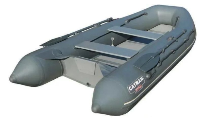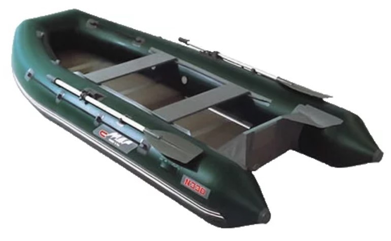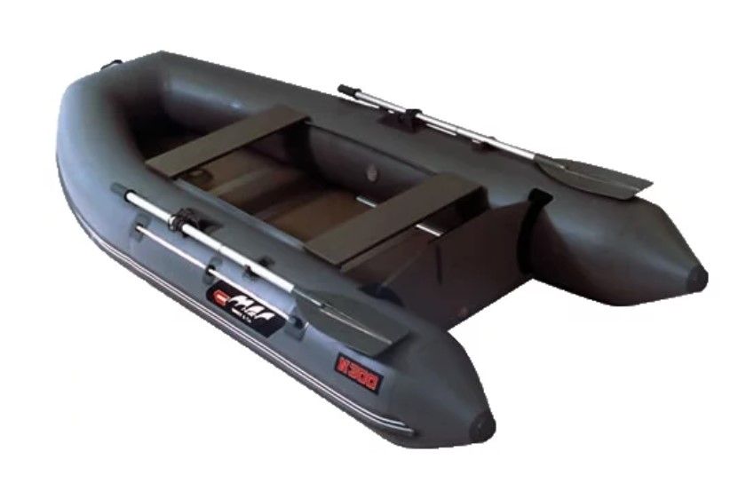 A motor boat, the bottom of which is non-inflatable, the floorboard is made of plywood. The recommended motor must be up to 18 HP. from. The boat, which has an inflatable keel and an integrated transom, is equipped with hard seats and can accommodate three adults. The total weight that can be carried on board is 420 kg.