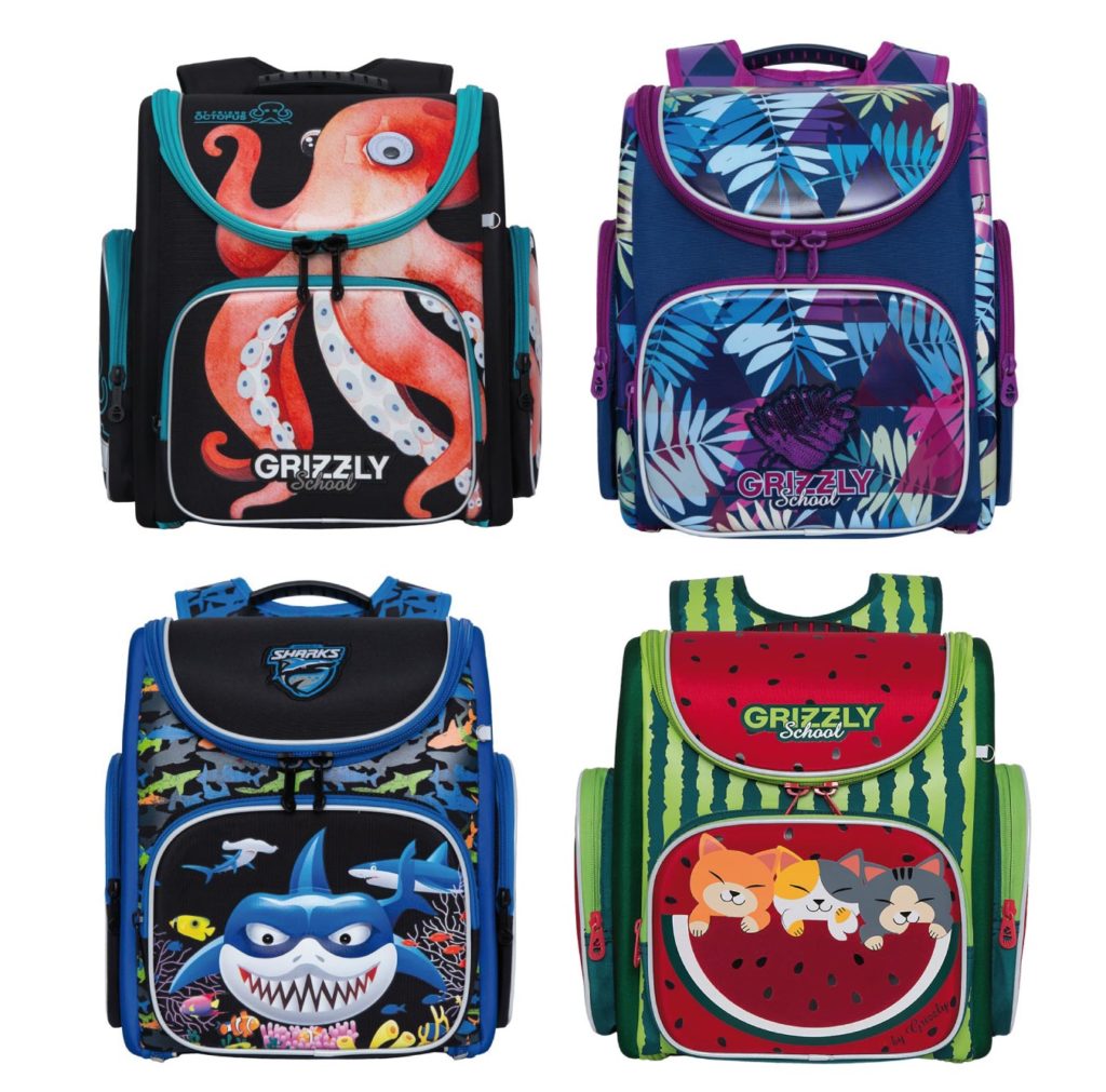 The GRIZZLY RAr satchels are classic school models. When developing this line, the main emphasis was placed on the need to achieve optimal rigidity of the structure (for the safety of the contents of the backpack), to equip it with mandatory ergonomic elements that will correctly distribute the load on the child's back and, with all this serious equipment, achieve a weight that meets permissible standards.