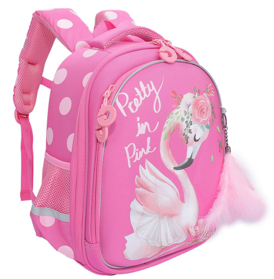 Inside there is one main compartment with a secure clasp. The side pockets are padded with heat-insulating fabric to keep your baby's breakfast warm. For convenience and safety, there are wide shoulder straps and an anatomical back. You can use this backpack from 6 years old. For decoration, a material that does not fade from exposure to the sun is used, so the backpack always looks bright and attractive. A change bag is provided with it.