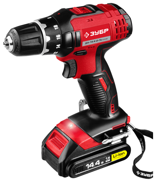 The professional model of the ZUBR ZDA-14.4-2 power tool is equipped with an improved design of the gearbox, which ensures uniform rotation of the chuck with a maximum frequency of one thousand one hundred and fifty revolutions per minute. The chuck is quick-clamping, allowing you to make a quick change of equipment. Sixteen steps of adjustment allows you to set the optimal amount of torque. The removable nickel-cadmium battery supplies electricity to the tool. The body is provided with LED-diode illumination for work in insufficiently lit places.