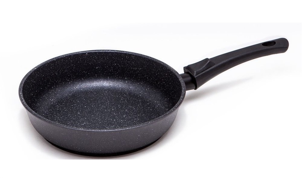 Marble-coated pancake pans are analogous to ceramic-coated cookware. The coating is a mixture of granite and marble chips. Pancake pans with this non-stick coating are poured out of aluminum.