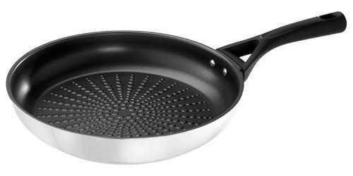 The frying pan with a diameter of 24 cm is made of stainless steel. The bottom is 5 mm thick. Weight is only 1 kg, which makes it easy to use the dishes.