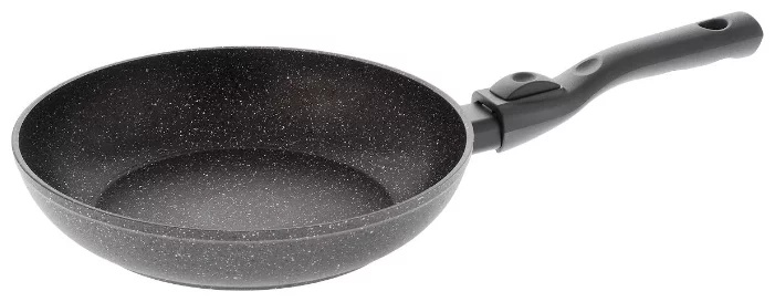 The most popular type. Many brands use it. It is of high quality and is weakly exposed to high temperatures. The bottom type is usually selected with a relief, so that the area of contact with the products is small. With proper care, good Teflon-coated pans will last up to 5 years. However, you only need to use special blades that will not damage the surface. If damaged, they emit toxic substances when heated.