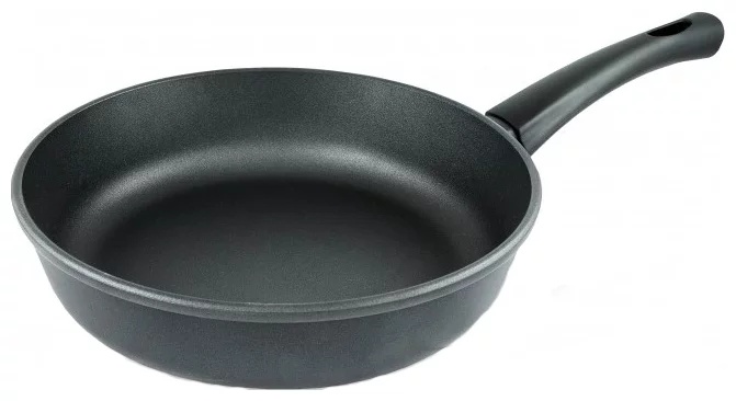The bottom plays an important role when choosing a frying pan for frying without oil. Thick and multi-layered is suitable. The service life directly depends on this. If the product is made of extruded aluminum, a thickness of at least 3 mm is required. In budget options, it may be less. But they will not last long either. In cast high-quality pans, the bottom thickness is regulated by pouring molten aluminum into molds. The bottom is considered optimal from 6 mm and the side is at least 3.5 mm thick. These pans will last a long time if used correctly.