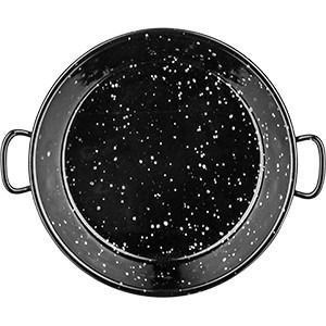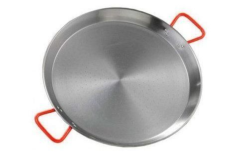 The total diameter of the paellera is 40 cm. The product is made of steel and has 2 short handles attached to the base by spot welding. The height of the walls is 7 cm.