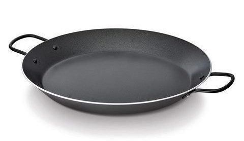 Paellera is made of die-cast aluminum. It has a Teflon Platinum Plus non-stick coating. The diameter of the pan is 32 cm.