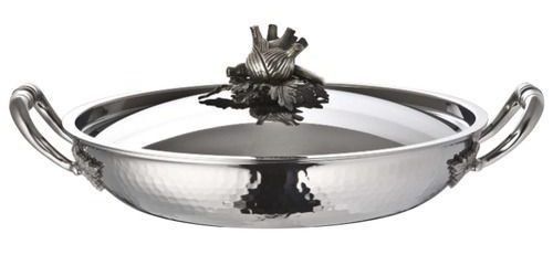 An incredibly beautiful paella frying pan will delight connoisseurs not only of practicality and quality, but also of a beautiful spring look. The main "highlight" of the product is the design work with the master's mark in the form of an unusual silvered brass handle, which is located on the lid.