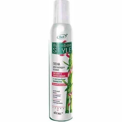 This foam is produced in Belarus. The product is of high quality and allows you to give the hair the desired volume for a long time, fixing the hair for a long time. According to the manufacturer, the bamboo extract contained in the foam protects the strands from the harmful effects of the environment, solar activity and hot air. The foam is gentle to the touch, does not stick on the hair and does not stick the curls together.