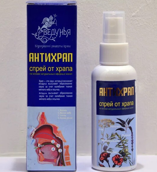 The Russian-made drug Snorex is highly praised. The drug is a bio-concentrate. In the composition: such useful components as sage, propolis and calendula. At its core, a remedy is not a medicine, but a dietary supplement. The balanced beneficial composition has a mild effect on the body, so the action is not instantaneous, but cumulative. Best of all, the effectiveness is demonstrated a week after intake, when the quality of sleep increases markedly: its duration increases and there is no feeling of fatigue after waking up. The useful composition of Snorex has a beneficial effect not only on the fight against snoring, it helps to normalize blood pressure, improves memory, relieves symptoms of fatigue and aggressiveness. The box with the product contains step-by-step instructions, which must be read carefully before use in order to avoid overdose. Unfortunately, you cannot find Snorex in pharmacies, and you can order only from an official supplier.