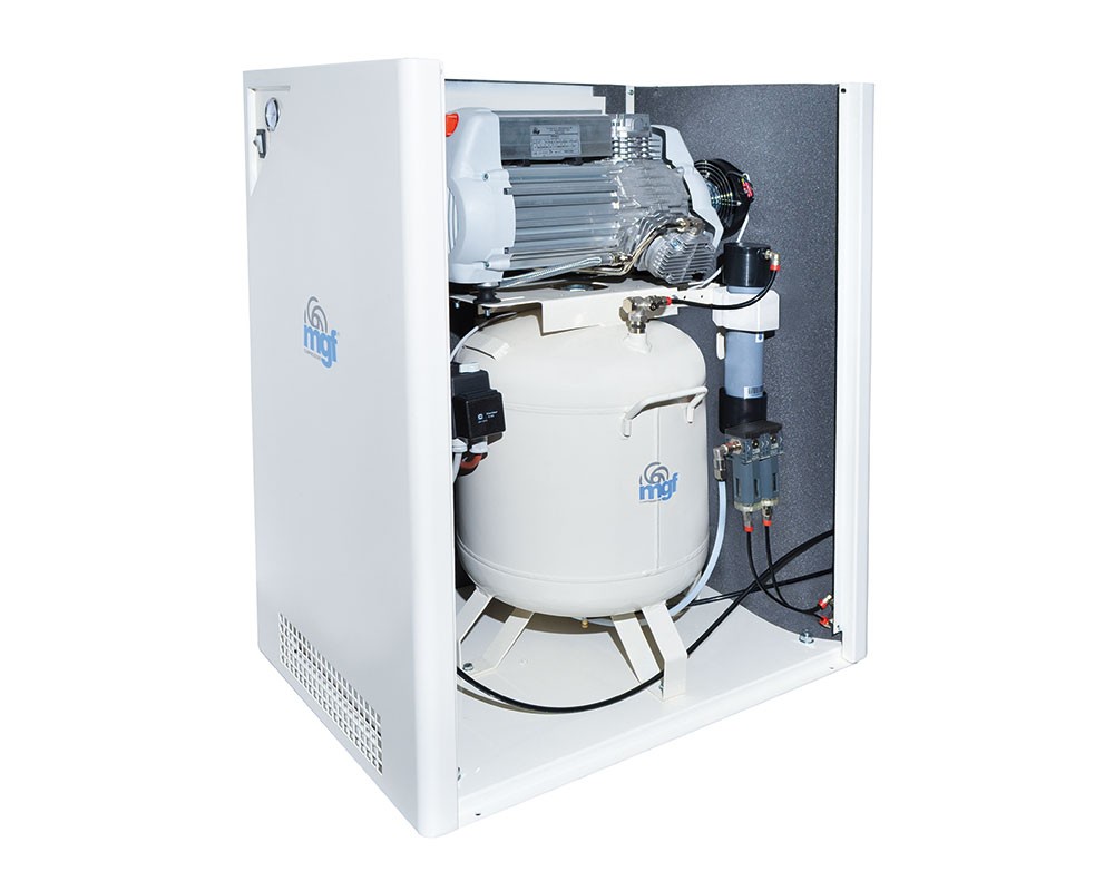 The model belongs to the Medicair series of the Italian manufacturer FINI. Able to simultaneously service up to 8 dental units.Such devices are widely used in laboratories to power instrumentation and gas analyzers, as well as to operate dental chairs. Since the appliance uses oil-free technology, it is completely safe and does not pollute the environment.