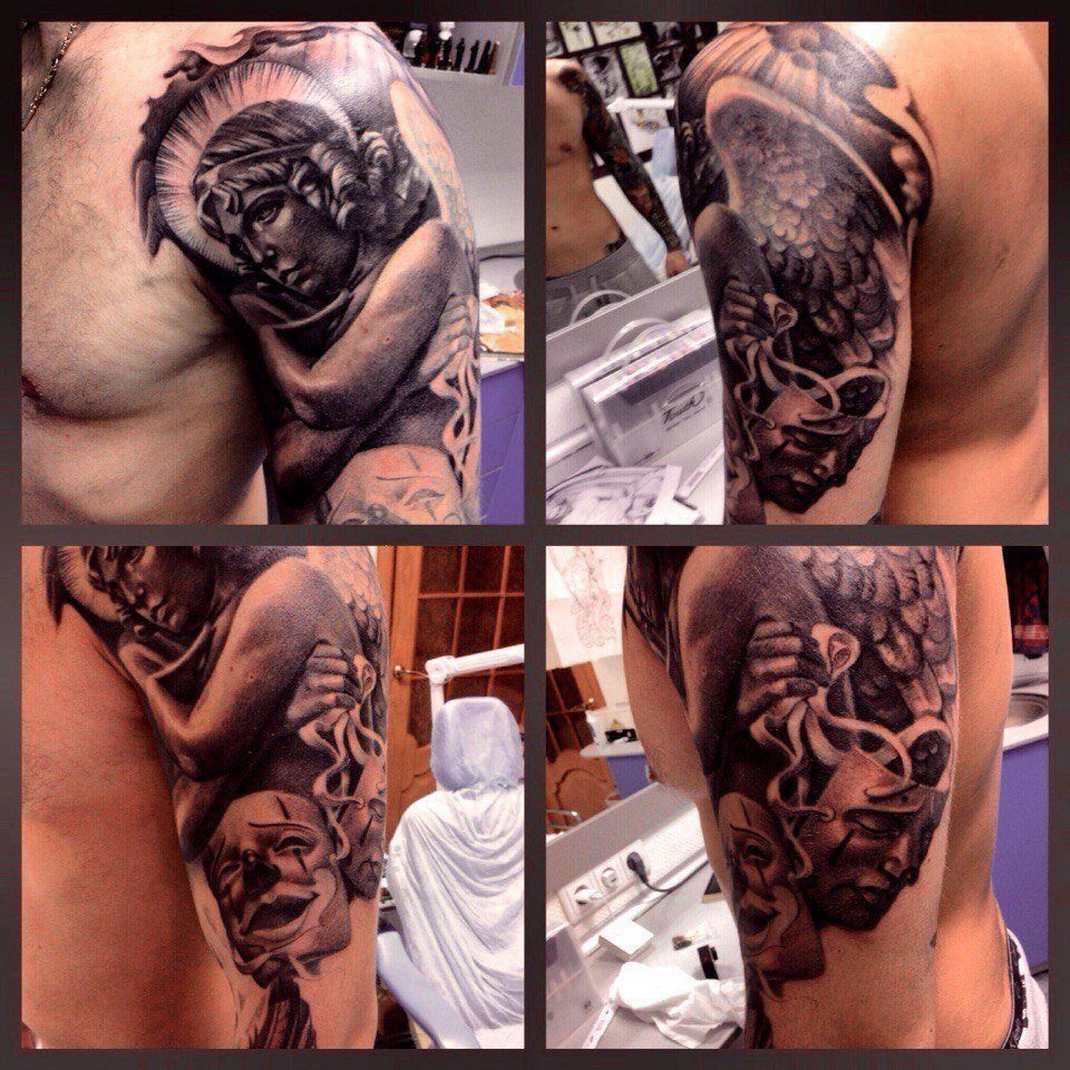 The studio employs masters with a special artistic education, so they will readily perform a tattoo not only according to their own sketches, but will also try to bring the client's ideas to life. The master and director of the studio has been working with tattoos since 2008 in different styles, performing works according to his own sketches and drawings of clients, has a professional medical and artistic education.