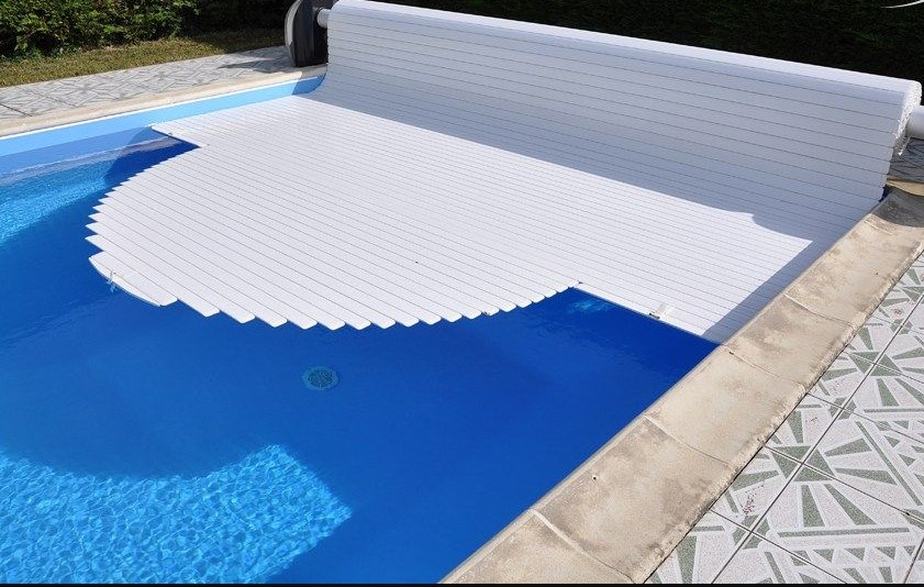 The jalousie coating will become an additional decoration, since it is not just a film lying on the surface of the water, but graceful jalousies that cover the water surface.