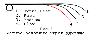 Medium (parabolic). The most versatile action popular with anglers. The bend of the equipment resembles a parabola.