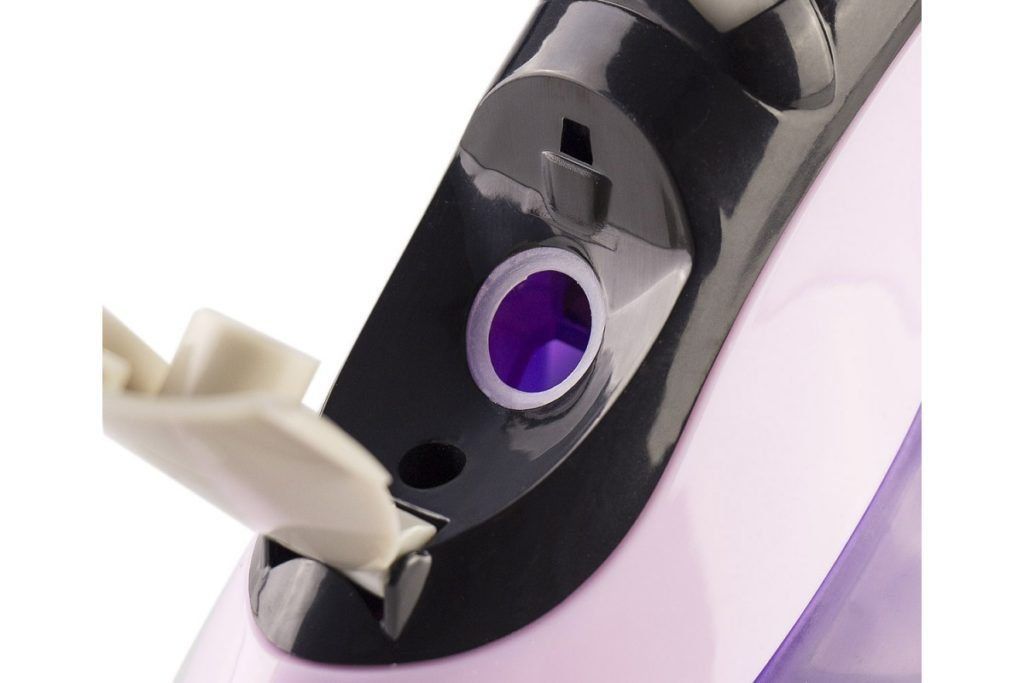 The holes on the soleplate are staggered. This ensures even steam flow and a faster ironing process. And the place where water is poured into the tank is closed with a transparent plastic lid. Thanks to her, dust does not get into it.