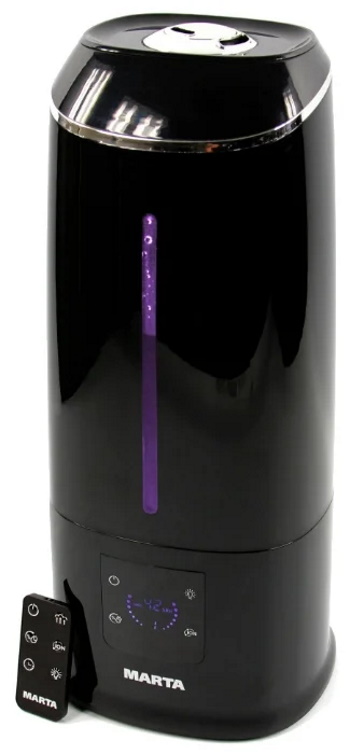 Economical product for humidification and purification of air with a large reservoir. The compact, streamlined black body fits well with any interior design. The built-in timer turns on the device at the right time, and the auto-off function provides protection against breakdowns. The display shows all settings, making it easy and simple to operate the humidifier.