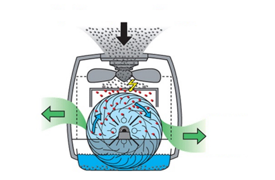 The most functional equipment, humidifying and purifying the air from pollution and unpleasant odors. It works by blowing off water dust from a drum consisting of plates. The dry flow is blown by the fan and the dirt settles on the plates, after which it is washed into the sump during rotation.