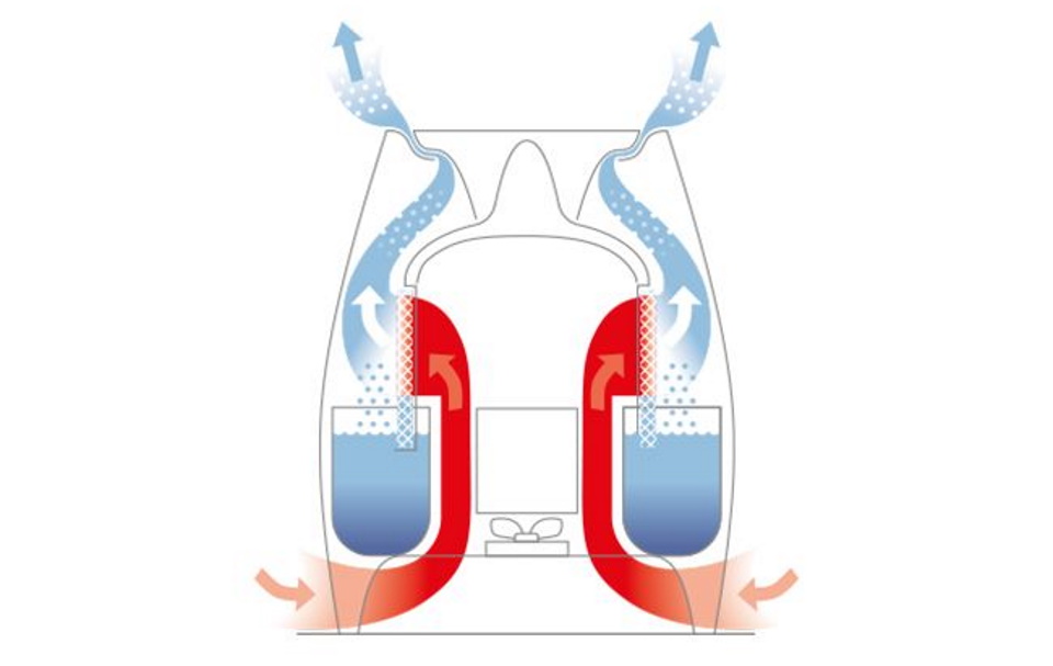 The minimum number of parts and the rounded design make it easy to clean. Two fan speeds provide high flow rates up to 0.3 l / h. The reservoir is easily filled with water from a tap or a jug; if it is absent, an automatic shutdown occurs.
