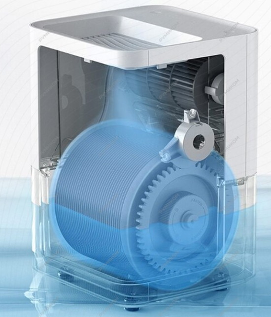 Compact model made in China with different operating modes. The maintenance of comfortable humidity conditions is carried out thanks to natural evaporation technology. The device is equipped with 36 blades for fluid circulation. A high level is achieved with a high intensity of 0.24 l / h. The double design separates the water tank from the electric motor unit for safety. Water is poured through the grate, the evaporation process is automatically suspended. Control is carried out by a smartphone in the "Mi Home" application.