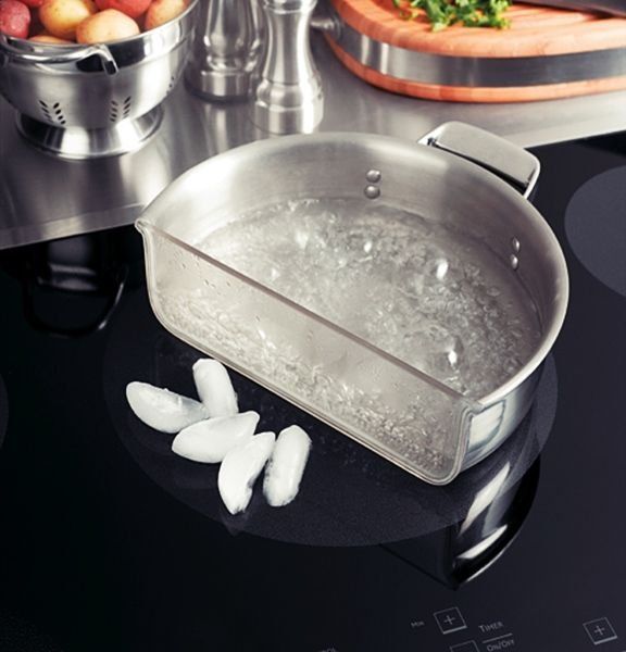 Induction hobs are more advanced electrical ones. They have the functions of fast heating, energy saving and, most importantly, they only heat the dishes. The surrounding surface remains cold.