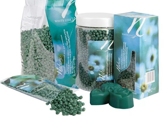 White Line Natura Azulene is a granular wax and is great for depilation of the bikini area, arms and legs. It will be good even for sensitive skin with coarse hairs that do not want to pull out. It is a solid, odorless oval drops. The pellets melt quickly, do it in a water bath. Apply a thin layer of the product to prepared skin, smooth it if necessary and solidification occurs within 10 seconds. To rip off the layer, gently pry the edge of the film, and not forgetting to support the skin, make a sharp dash against hair growth. After the procedure, chlorhexidine can be applied to the skin to avoid redness.