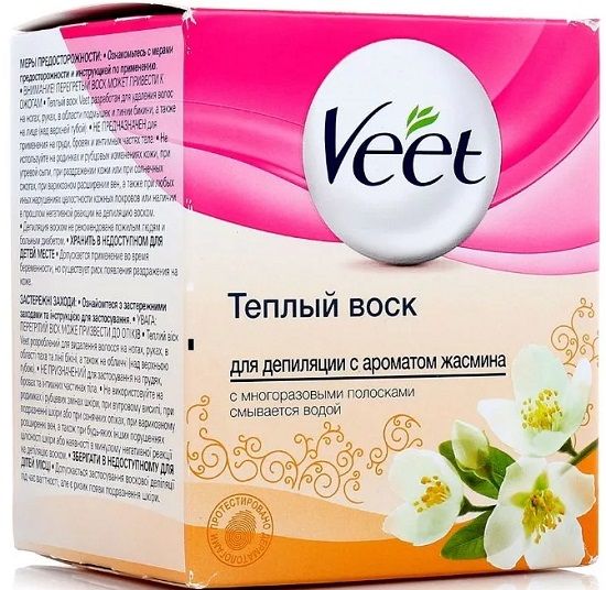 Studying the popularity of models of depilatory products, it is impossible not to mention Veet Warm Wax. On the territory of our state, it is one of the most popular products for depilation. The set contains a 250 ml jar with wax, a spatula with a temperature indicator and 12 reusable fabric strips. That is, you do not need to purchase anything extra. Since the tapes are reusable, after use, wash them, dry them and you can safely use them further. For use, the wax is heated in the microwave to a comfortable temperature. To find out if it is hot, put some wax on the spatula and touch the skin. During use, apply the hair growth product, smooth the strip along the leg and pull it off against hair growth with a sharp jerk. Residues of the product are easily washed off with water.
