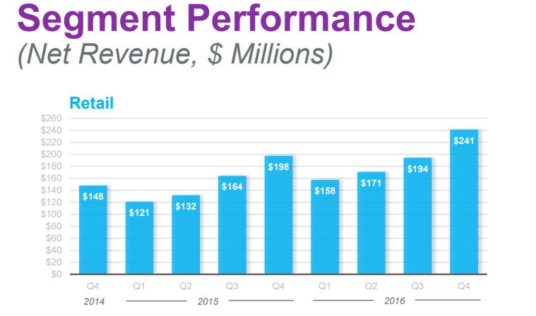 In the chart below, you can see that Netgear has experienced systematic leaps in capitalization since 2014.The difference reached an average of $ 25-35 million. But as a result, the minimum capitalization level in 2016 increased by $ 10 million, the maximum - by $ 77 million. This is a great metric for Netgear, especially in a highly competitive industry.