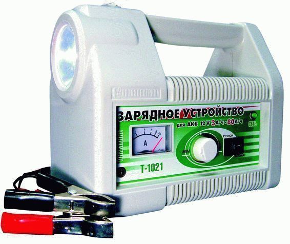 This is a pulse charger. Works fully automatically. Suitable for those motorists who do not want to mess with the settings. Auto electrician T-1021 has the function of voltage and current stabilization. The charging current is up to 7.5 amperes.