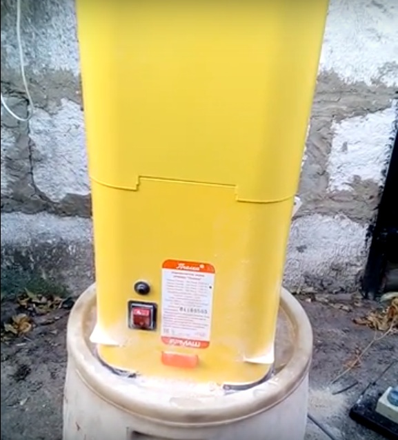 Unit with a productivity of 200 kg per hour, drum rotation speed up to 12 thousand revolutions. It costs 3498 rubles. You can add 10 liters of different types of grain. 48x28x30 cm - overall dimensions. The manufacturer advises using the device for no longer than an hour; the device should rest for half an hour. Weighs 8 kg. Engine power - 1300 W.